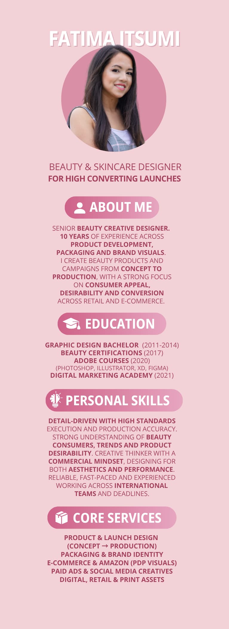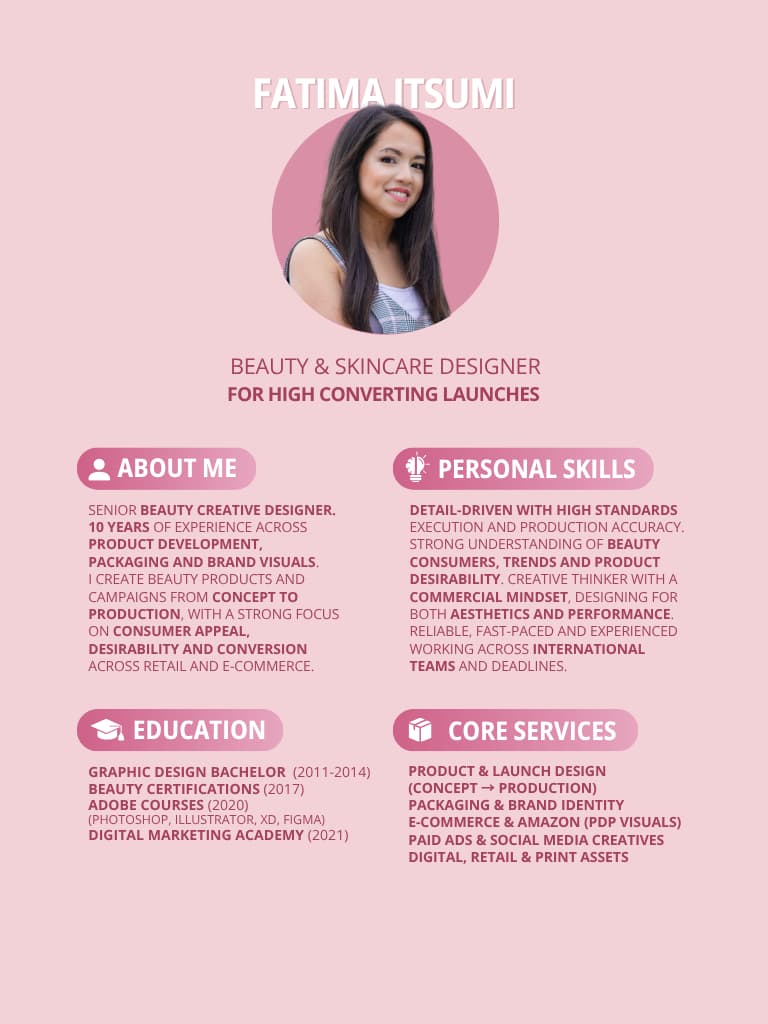 Fatima brings a rare balance of creativity and strategic thinking. Her design work elevates not just the product, but the entire brand experience. A true asset to any beauty company aiming to stand out.