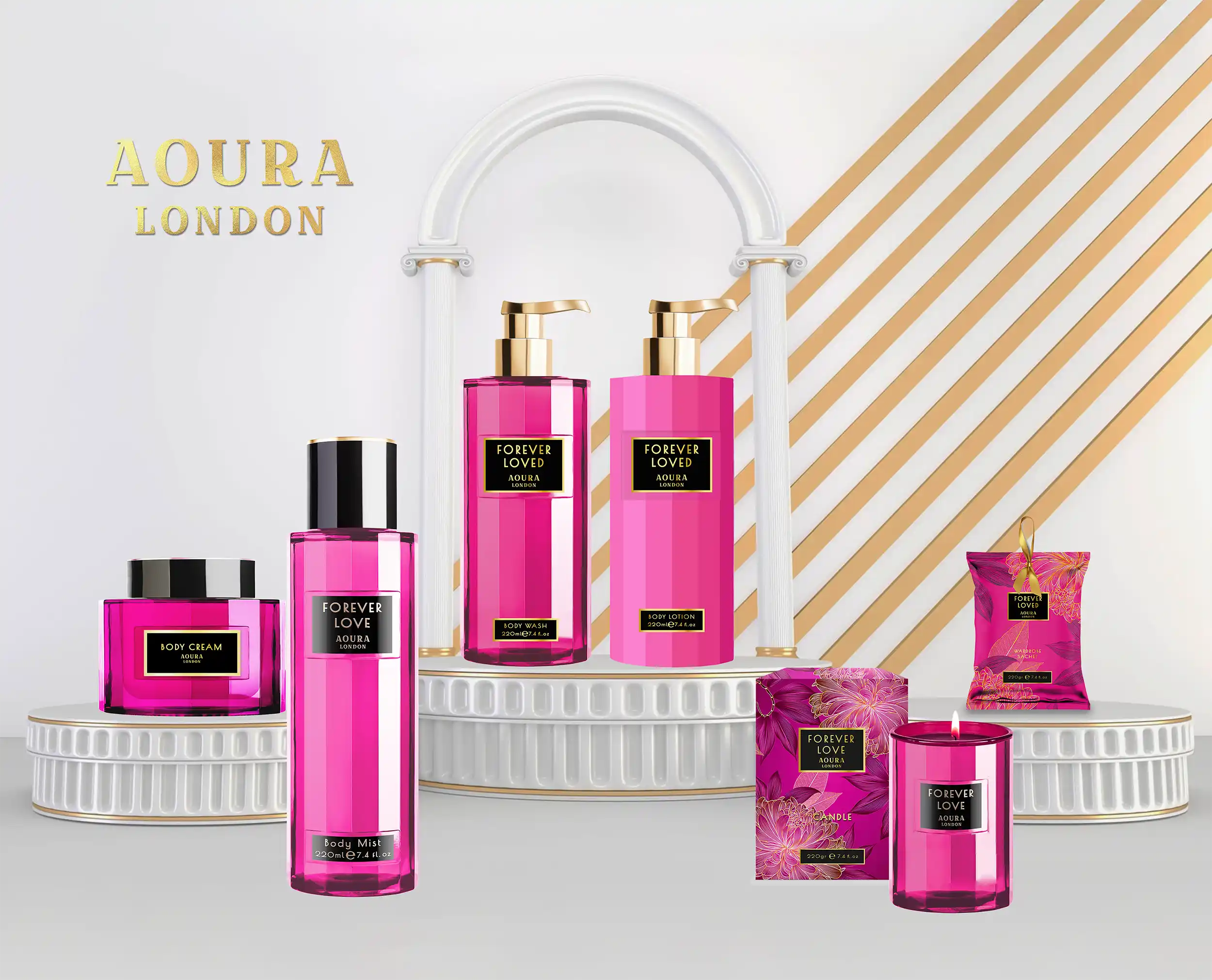 From Aouras Eau de Parfum and Body Mist Ranges, I was told to create a Bath and Body Range with Shower Gel, Body Lotion, Body Butter, Candle and Wardrobe Sachet.
