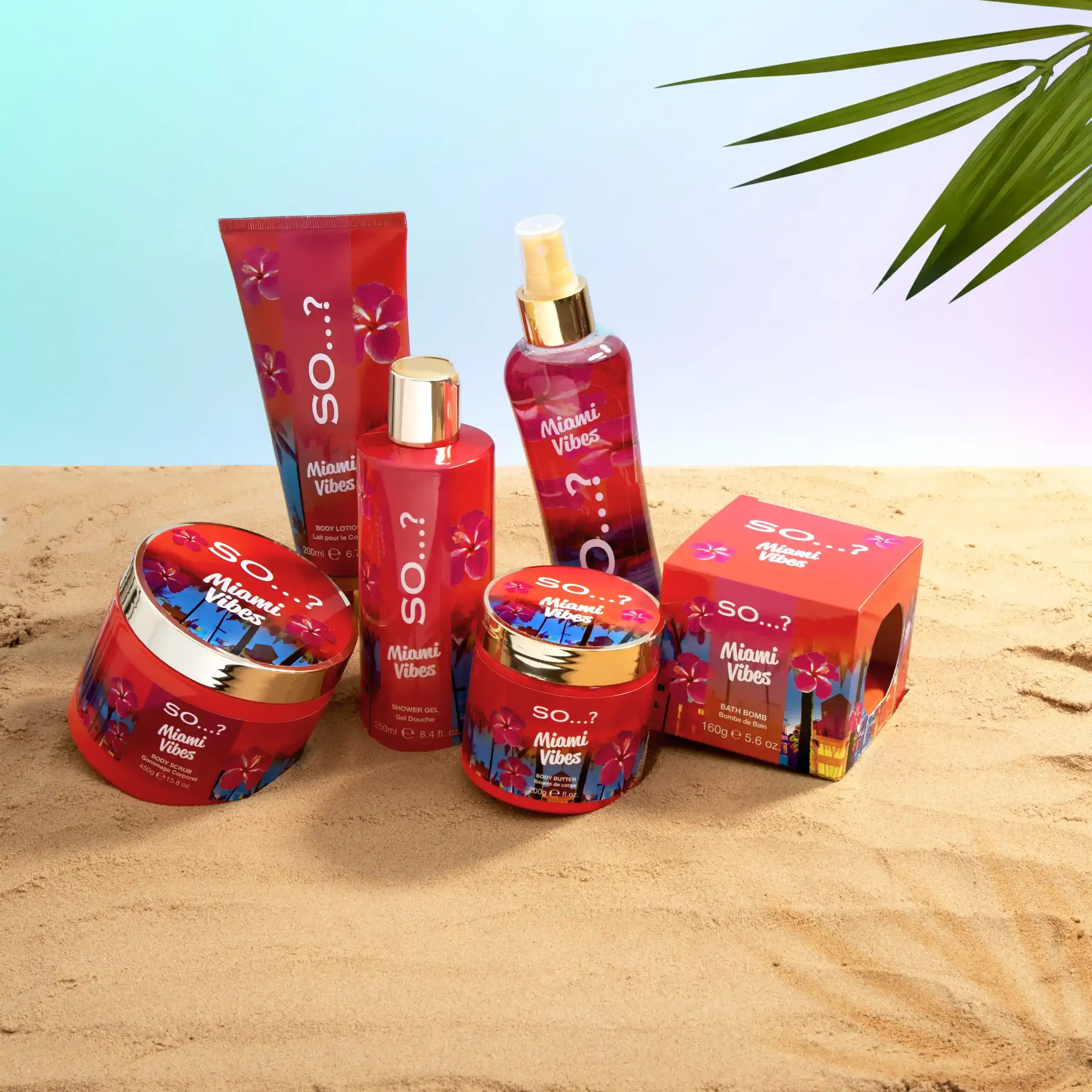 From UK’s No. 1 Body Mists Ibiza Dreams and Miami Vibes from Summer Escapes Range sold at Boots, Superdrug, UK Supermarkets, Ecommerce, Amazon and all around the world, our team developed a Bath and Body Range.