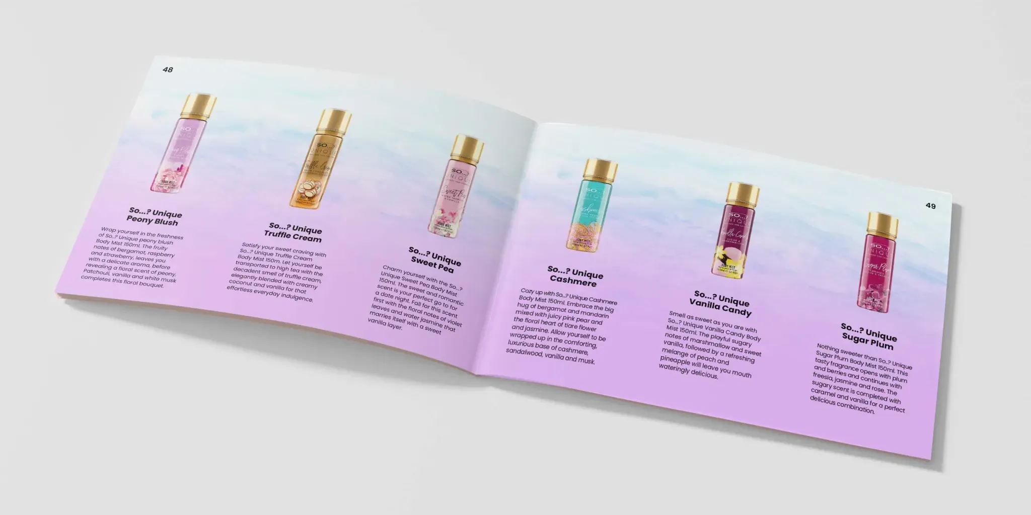In the competitive fragrance and beauty sector, a brand’s voice can easily get lost without a clear cosmetic brand design. This project for So…? Fragrances highlights the transition from a collection of products to a unified visual powerhouse. Within the cosmetic brand design, we define the “Do’s and Don’ts” of the brand’s aesthetic. This includes specifying the exact secondary color palettes that complement the primary brand colors, ensuring that seasonal launches still feel like part of the larger So…? family.