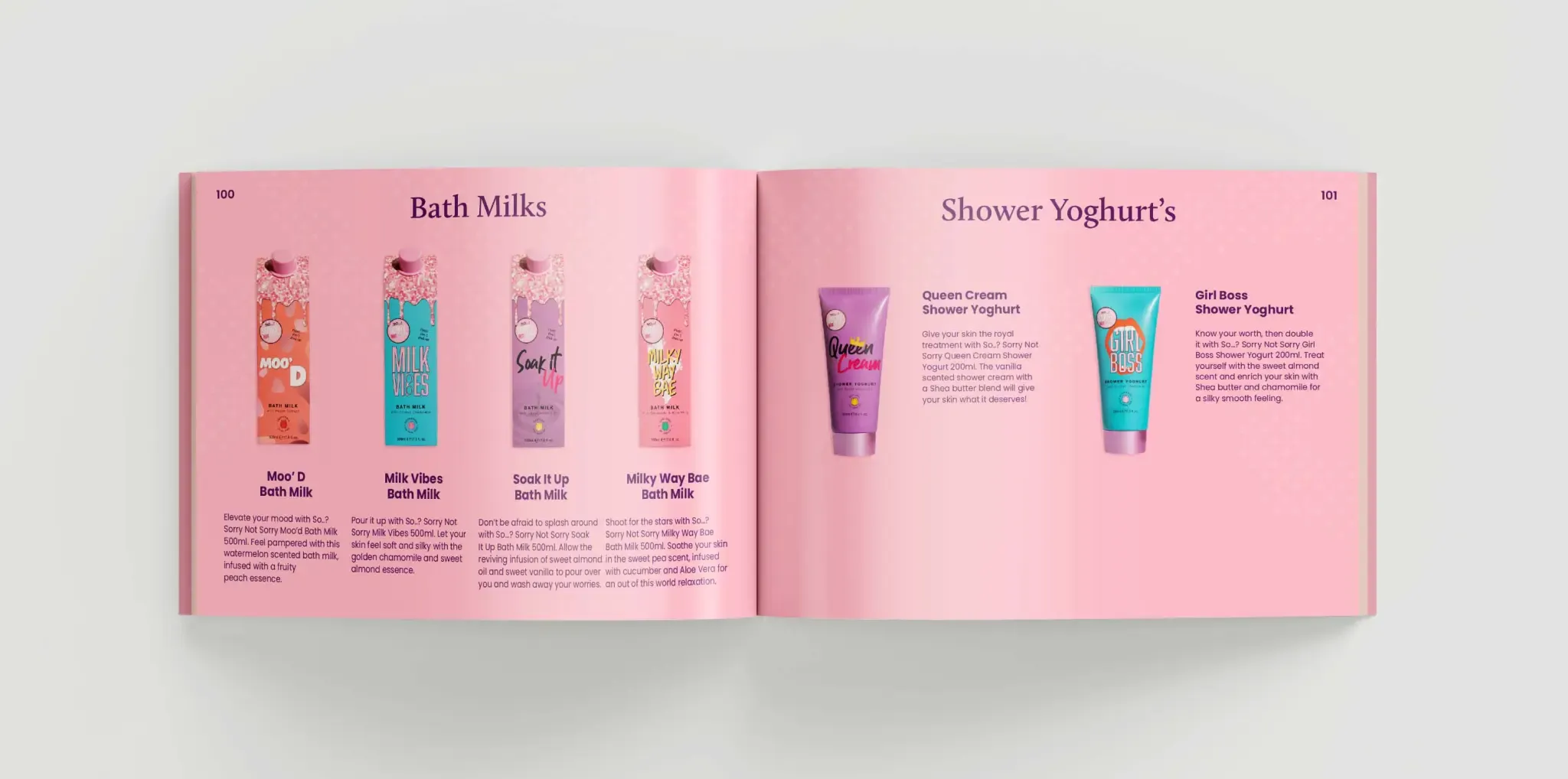 The true test of a great cosmetic brand design is its scalability. As So…? continues to launch new scents and body care lines, the brandbook must provide the foundation for that growth. This project illustrates how cosmetic brand design creates a repeatable system for label placement, packaging icons, and promotional graphics.