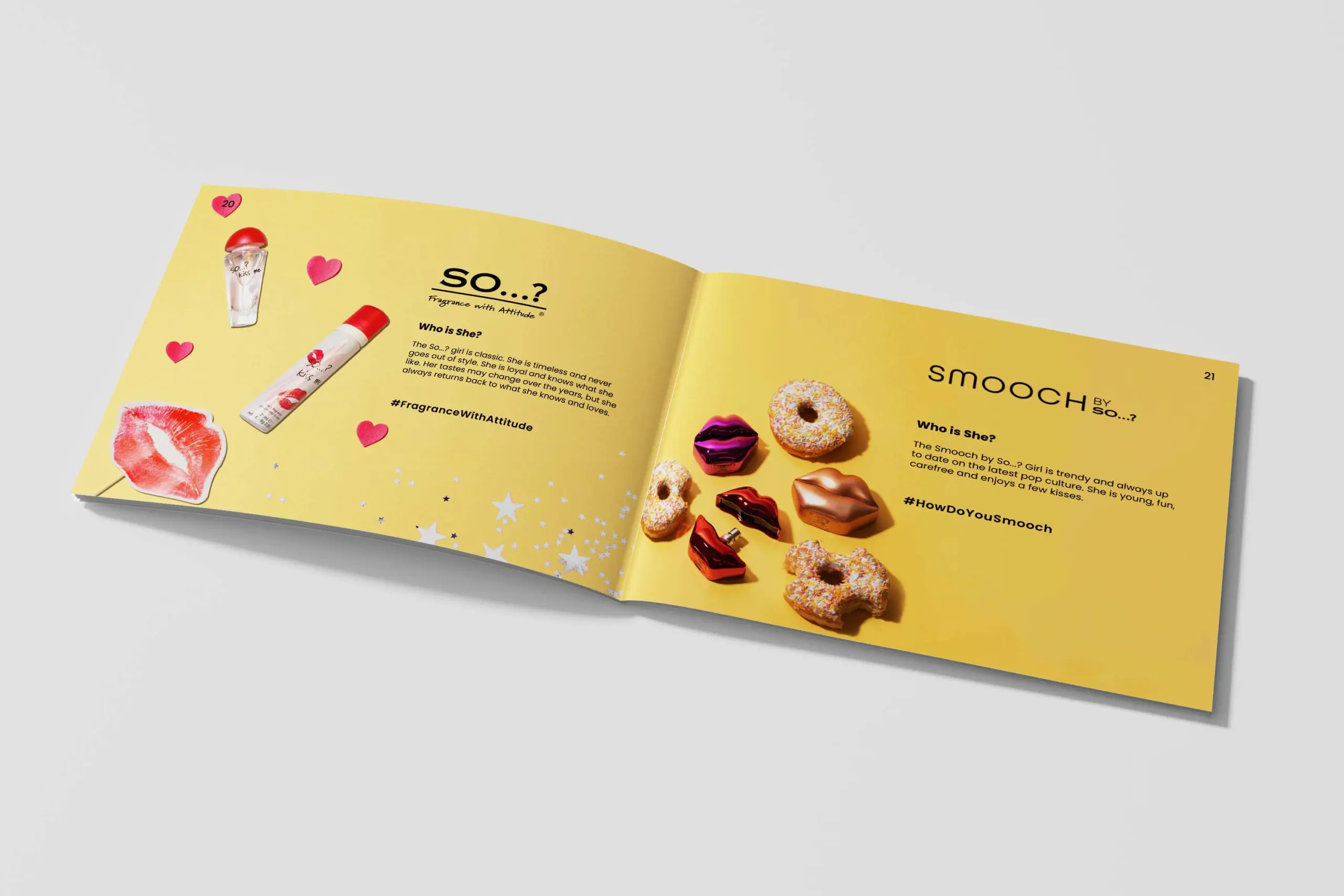 Working on cosmetic brand guidelines design for a fragrance brand requires a unique understanding of “lifestyle” visuals. Unlike a standard corporate manual, a beauty brandbook must inspire creativity while enforcing rules. This section of the portfolio demonstrates how the cosmetic brand guidelines design for So…? incorporates photography styles, mood boards, and “vibe” checks.